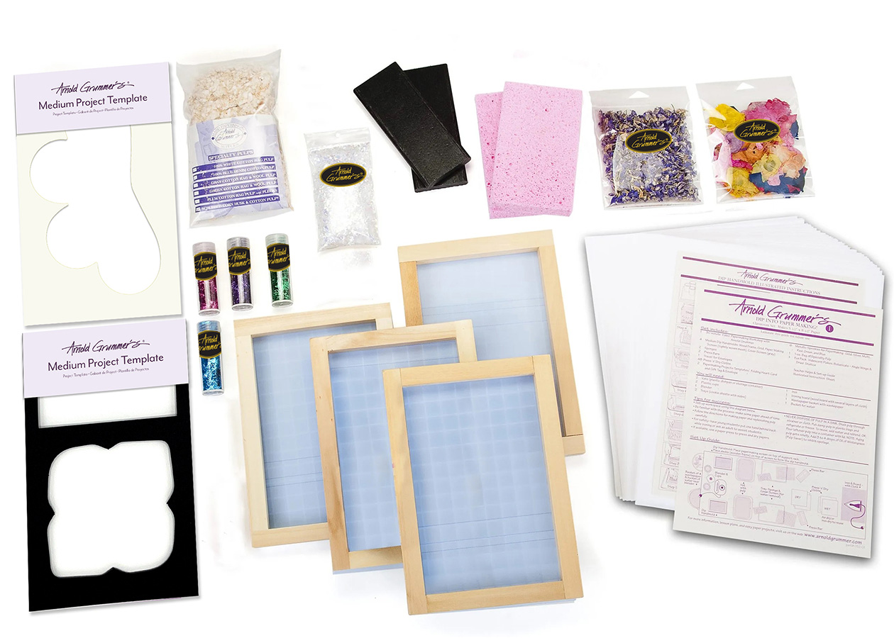 Set uses the easy and successful ‘POUR’ method to make paper. Multiple screens keep the process moving in group settings.